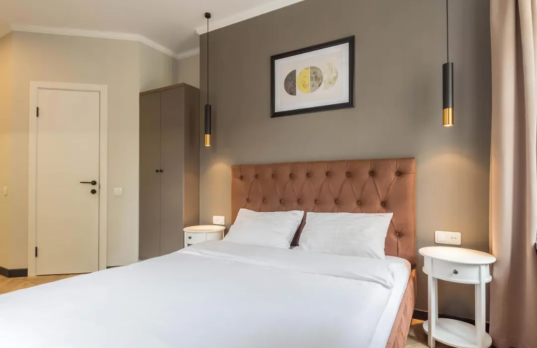 На мини-кухне предоставлена микроволновая печь, электрочайник и стеклянная посуда. Гости могут пообедать блюдами украинской кухни в ресторане Корчма Тарас Бульба, расположенном в 5 минутах ходьбы. До аэропорта Киев им. И. И. Сикорского можно доехать за 15 минут.